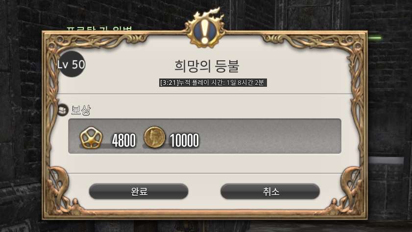 - 메인 퀘스트 보상 장비보다 성능이 좋습니다.