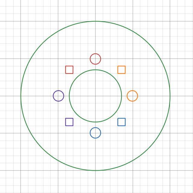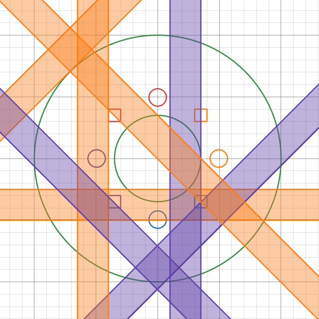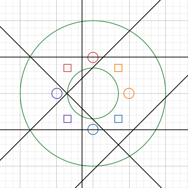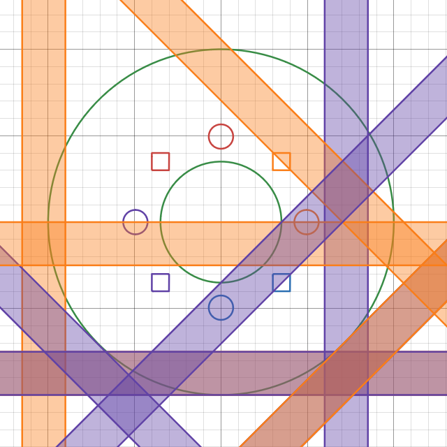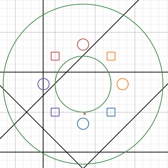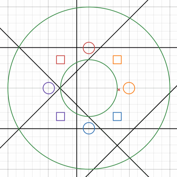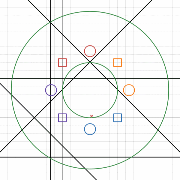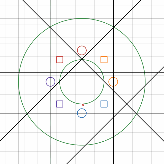 패턴2를 타겟서클 반지름의 루트2배만큼 좌하단으로 평행이동시킨 형태입니다