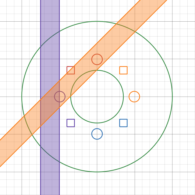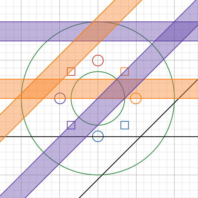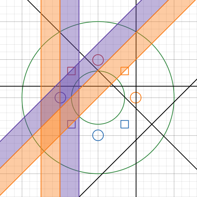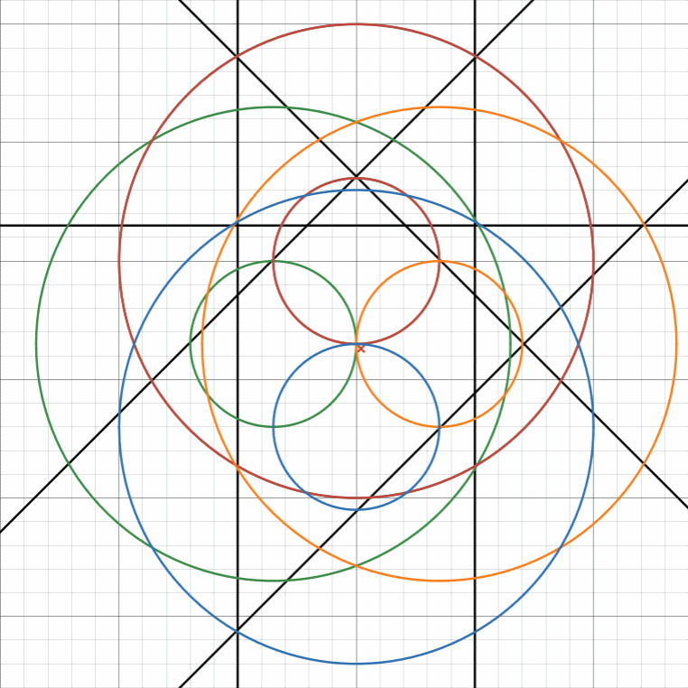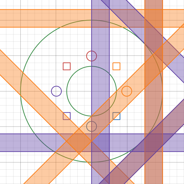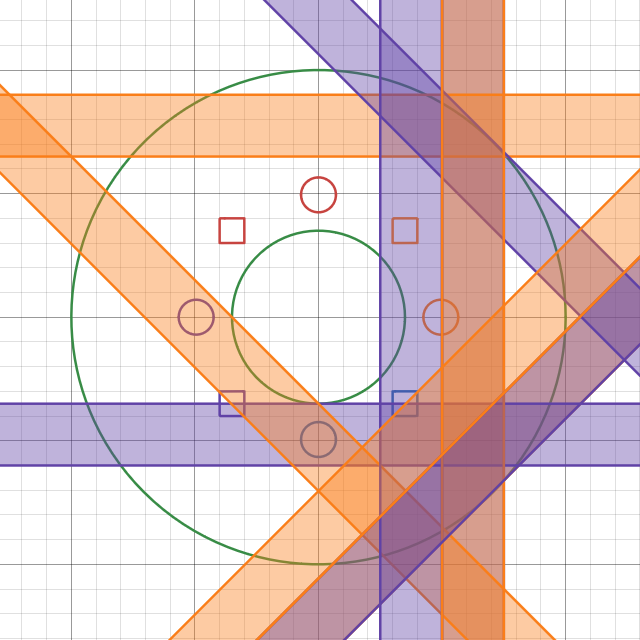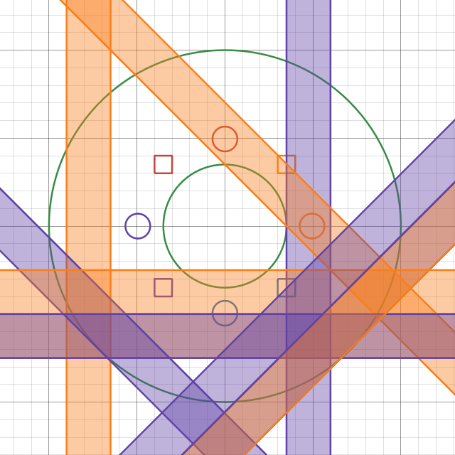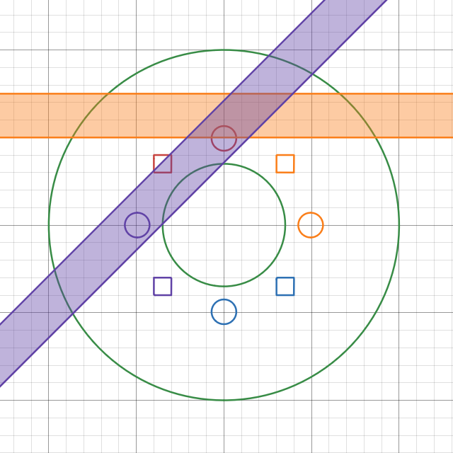 패턴2를 타겟서클 반지름의 루트2배만큼 좌하단으로 평행이동시킨 형태입니다