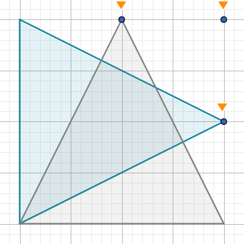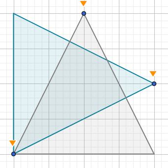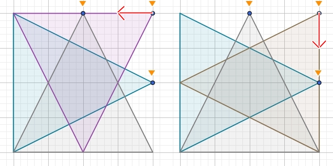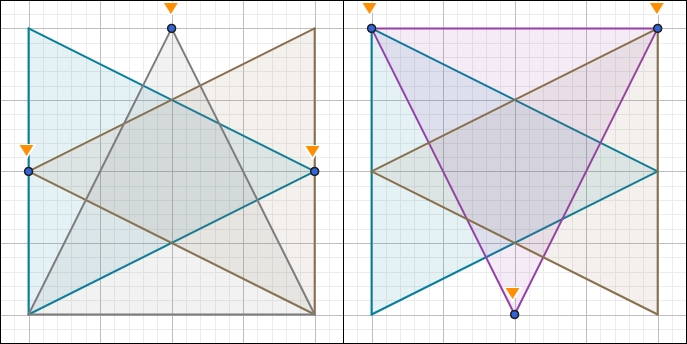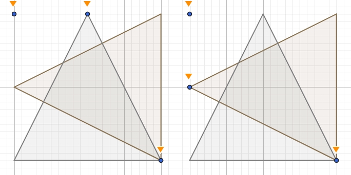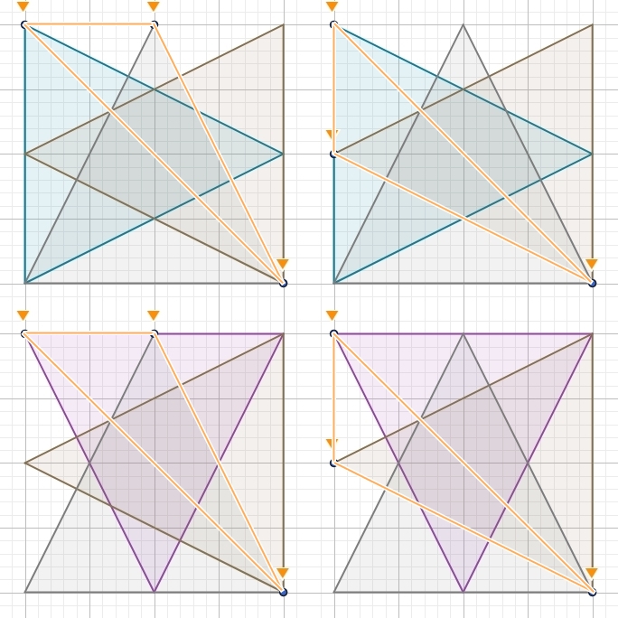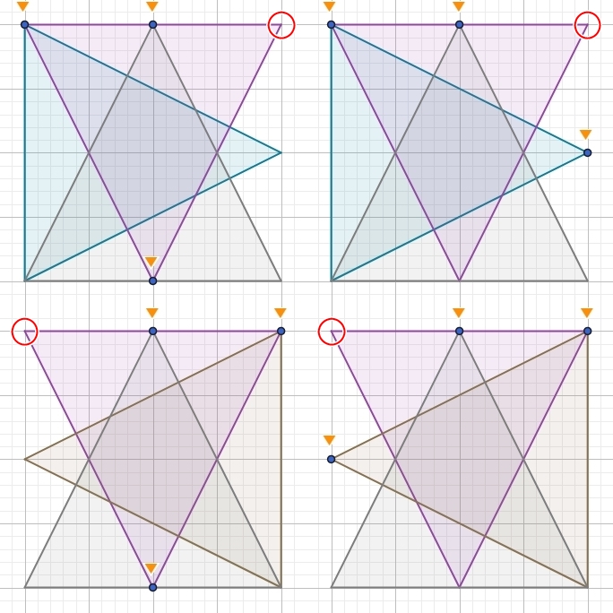 꼭짓점에 떨어진 검이 그릴 삼각형은 이동 방향에 따라 갈리므로 두 가지입니다.