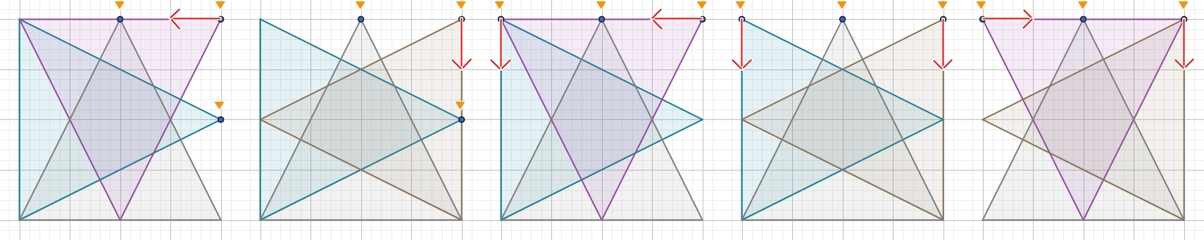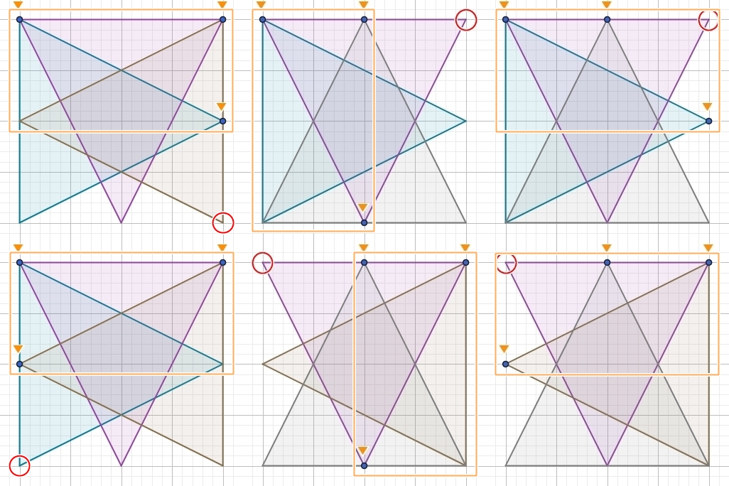 3가지 경우, 검이 꽂혔을 때 안전지대 후보가 2가지 생기며, 특정 꼭짓점의 검의 이동방향에 따라 하나로 확정됩니다.